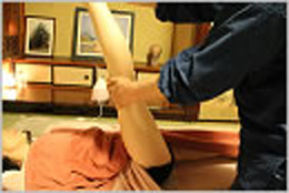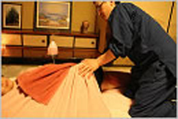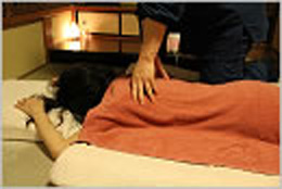 アロマ整体ではタオルの上から整体を施術します。 |
