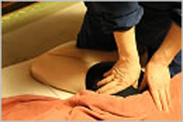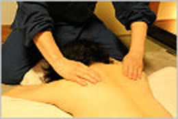 お客様の症状に合わせてブレンドしたアロマオイルを、首~肩~背中~腰まですべて塗布します。 |