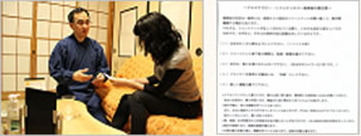 カウンセリングシートを拝見しながら、今、一番おつらいところから全体の体調をお聴きします。体調や香りの好みに合わせて精油(アロマオイル)を一緒に選びます。